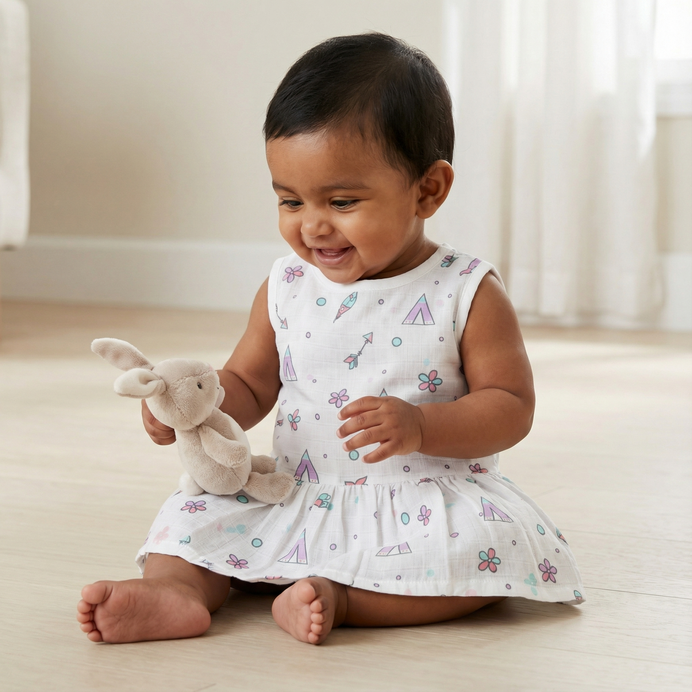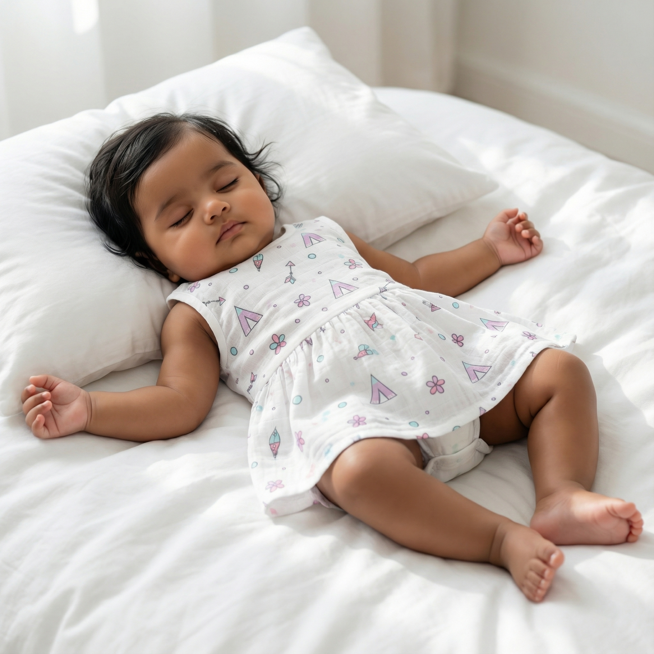 Soft muslin frock designed for baby comfort.